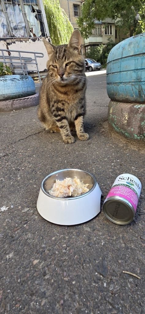 Since the start of the war, Linda has personally taken on the daily care of street cats. Today, she looks after around 80 cats living in courtyards, near the sea slopes, and in the military sanatorium area. All are sterilized and receive medical care.