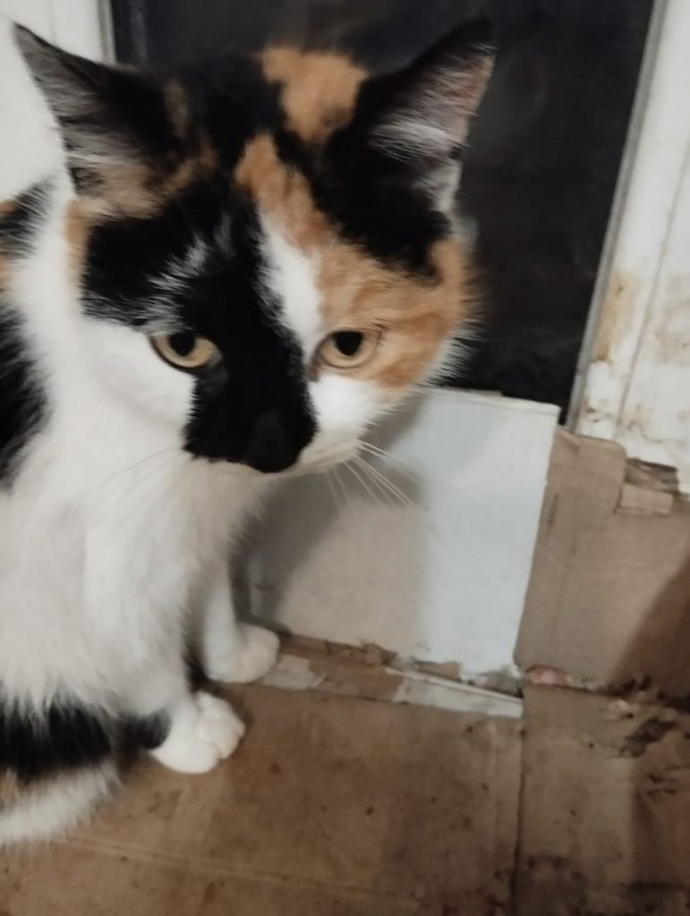 A tortoiseshell kitten was found abandoned in severe frost.