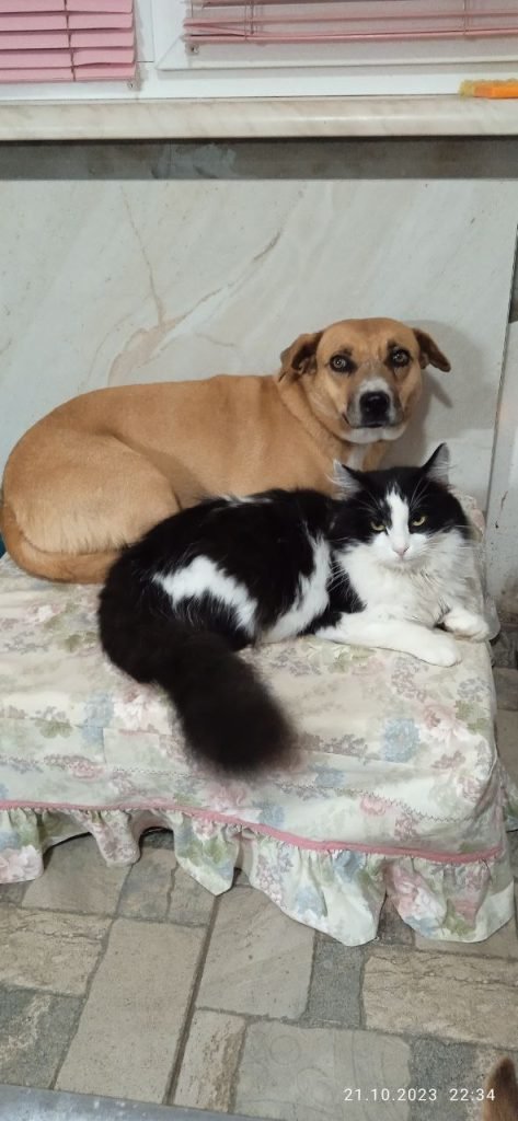 Recently, a dog named Santa with a puppy girl joined their wonderful family. Currently, Masha and Amina have 9 cats and 8 dogs, and they also take care of 10 stray country cats.