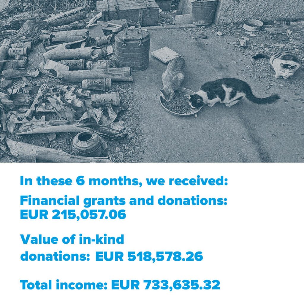 - A total of: fodder received and given away as aid: EUR 472,949,19. Cats and dogs from different regions of Ukraine can count on our support.